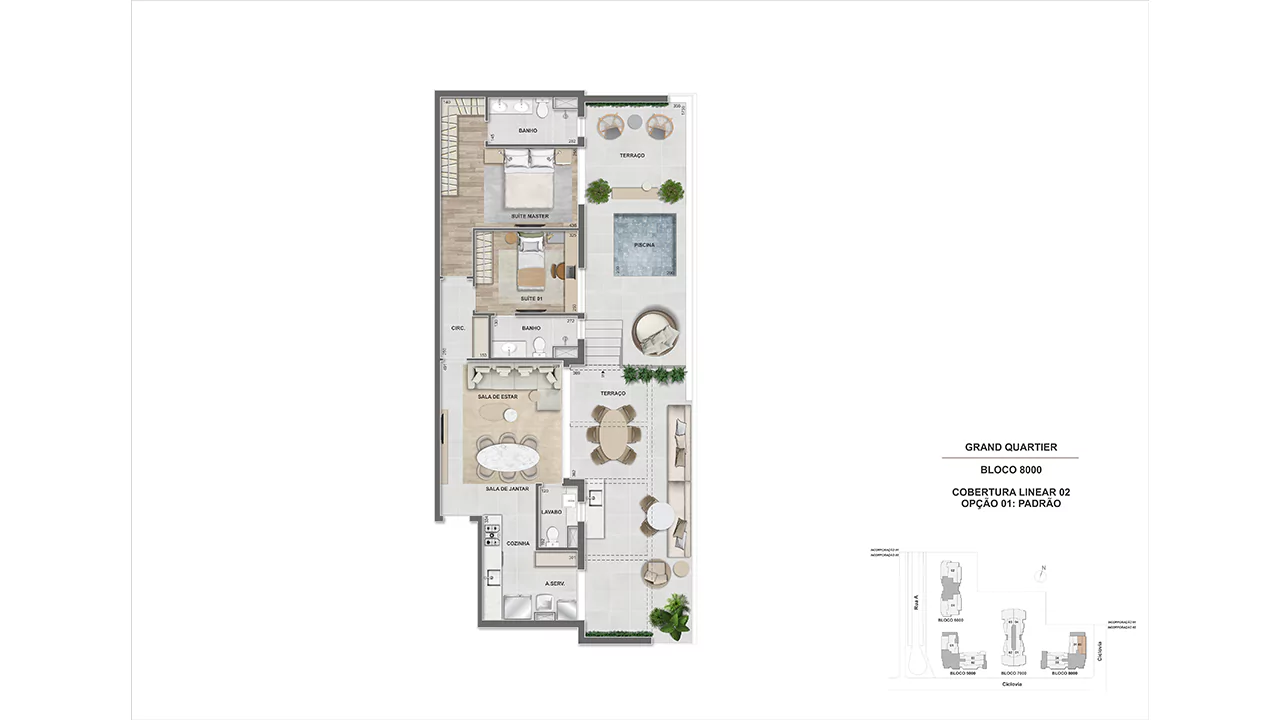 Além de tudo que o Rio 2 Barra da Tijuca oferece, no Grand Quartier você tem acesso a um Clube Resort de lazer exclusivo.